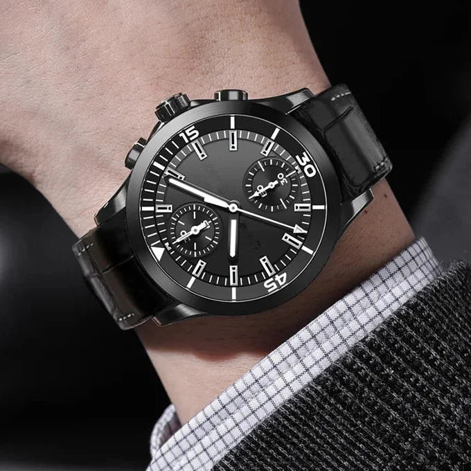 Eager to elevate your style? Look no further than this men’s watch. The aviator-inspired wristwatch design enhances your stylish look. Crafted with a durable stainless steel case and comfortable genuine leather strap, it offers both style and durability. Fashionistas love this perfect wristwatch for its automatic self-wind movement feature. Don’t wait, grab yours now!
