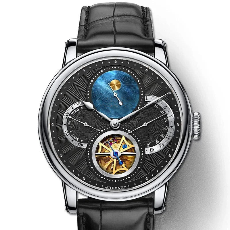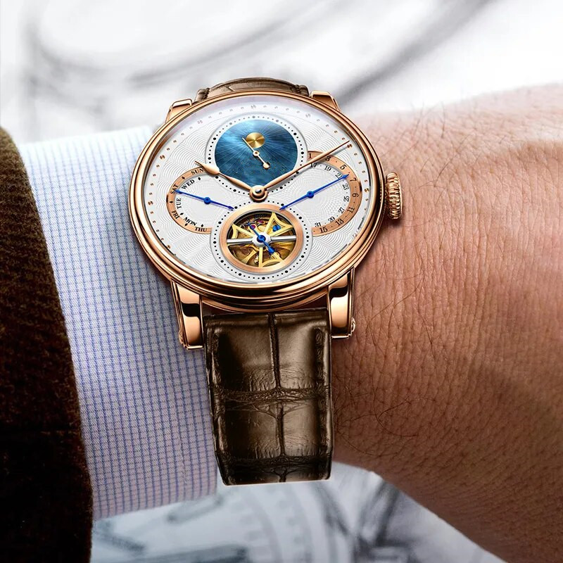 This watch is an unavoidable staple in the modern world, especially for modern men. The stainless steel case and genuine leather band ensure durability and classic elegance. The captivating skeleton design and stylish colors inspire a delightful experience. Its water-resistant feature ensures longevity, ideal for various conditions and activities. Order now!