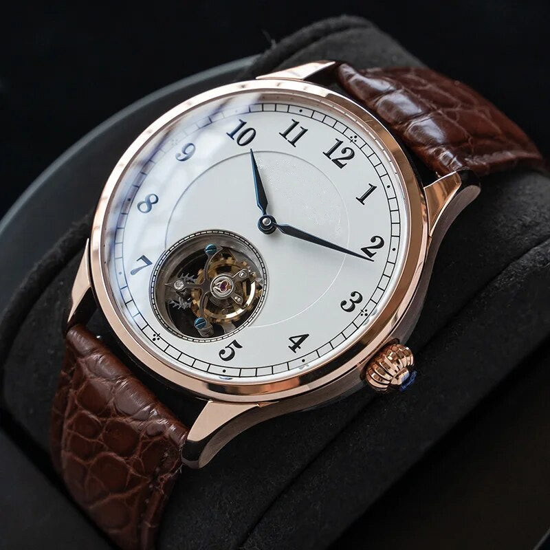 • Men’s Crocodile Leather Mechanical Hand Wind Business Tourbillon Watch